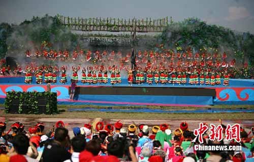 中新網(wǎng)西昌8月4日電(記者劉忠俊)4日上午,四川涼山州西昌市數(shù)千名群眾身著節(jié)日盛裝,跳起了獨(dú)具民族特色的歌舞,拉開(kāi)了第六屆中國(guó)•涼山彝族國(guó)際火把節(jié)的序幕。