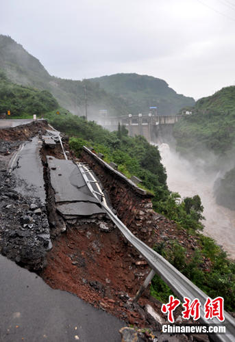 中新網(wǎng)雅安8月22日電(劉忠俊 華洋)8月22日凌晨,記者從四川雅安市交通部門(mén)獲悉,國(guó)道108線雅安市境內(nèi)滎經(jīng)K2432+800-900三大灣處因連日暴雨致使路基下沉,下沉深度近2米,已實(shí)行雙向交通管制,禁止一切車輛通行。由于暴雨不停沖刷跨塌路基,使至路基基礎(chǔ)軟化。一擔(dān)路基跨塌阻塞河道,將形成“堰塞湖”。 嚴(yán)重威脅下游7個(gè)鄉(xiāng)鎮(zhèn)沿河一帶群眾生命安全和花灘電站水庫(kù)大壩安全。