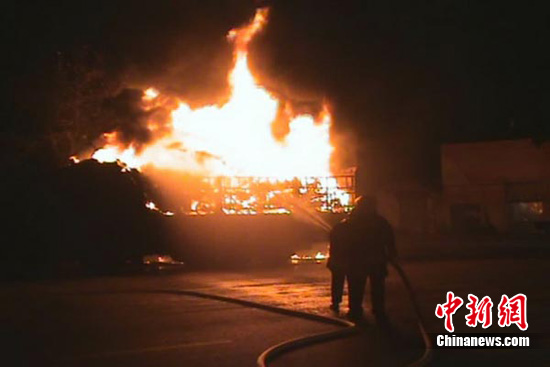 消防隊(duì)員趕到現(xiàn)場(chǎng)后,發(fā)現(xiàn)一輛廂式貨車大貨車正在燃起熊熊大火,10多米長的車廂已經(jīng)被大火包圍,火焰有四五米高。由于車上裝滿了摩托車,有的摩托車油箱里還有汽油,貨車隨時(shí)會(huì)有爆炸的危險(xiǎn)。