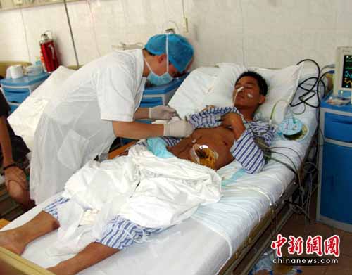 6月25日,剛脫離生命危險(xiǎn)的三隊(duì)員在醫(yī)院接受采訪。他們說(shuō),以前都與盜割電纜蟊賊遭遇過(guò),但這次是第一次遇見如此瘋狂歹徒。