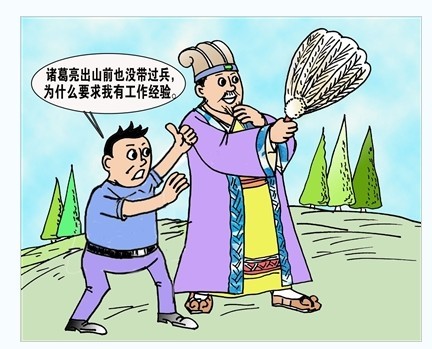 “諸葛亮出山前也沒(méi)帶過(guò)兵,為什么你們一定要求我有工作經(jīng)驗(yàn)?”昨(18)日,名為“夢(mèng)游王子”的網(wǎng)友在大楚網(wǎng)社區(qū)發(fā)帖講述他求職屢屢受挫的經(jīng)歷,質(zhì)疑企業(yè)用人苛求工作經(jīng)驗(yàn)。