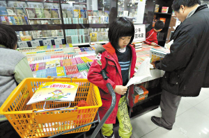 據(jù)新華書店負責人介紹,連日來,書店無論是客流量還是購書量都有明顯的增加!靶抡n標系列的閱讀叢書、字帖類的書籍最受歡迎!痹跁莾(nèi),記者碰到了一位尋找字帖的小女孩。原來學校要求學生寒假練習寫字,指定了某本字帖作為練習用書,所以造成該書的暫時脫銷。