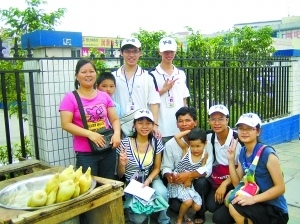參與調(diào)查的大學(xué)生與買玉米的母女合影