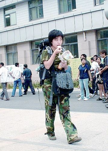 【蔣方舟】:其實(shí)還好,大家蠻強(qiáng)韌的,大家強(qiáng)韌程度還是超乎我的想象,然后唱歌干嘛的,有一點(diǎn)高興。但是走到最后,大家連說話都累,連喘口氣都累。當(dāng)時(shí)覺得身體到達(dá)極限了,然后腿腳都不好使。我記得軍訓(xùn)最后一天,我們談?wù)摶氐饺碎g打算做什么,有很多同學(xué)的理想是吃肉,然后有一個(gè)男生的理想是穿便裝,穿女裝,有的同學(xué)的理想是到澡堂洗幾個(gè)小時(shí)的澡,我的理想是要穿高跟鞋。因?yàn)槲矣X得快跟解放牌膠鞋融為一體了,要崩潰了。