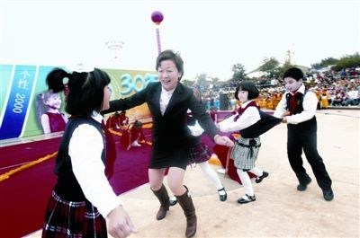 據(jù)悉,這是江岸區(qū)教育局為紀念改革開放30周年組織的“童心童趣30年”展演。各小學(xué)經(jīng)過精心策劃,將飽含時代烙印的經(jīng)典童年游戲和電視劇人物搬上舞臺,引來數(shù)千市民圍觀。