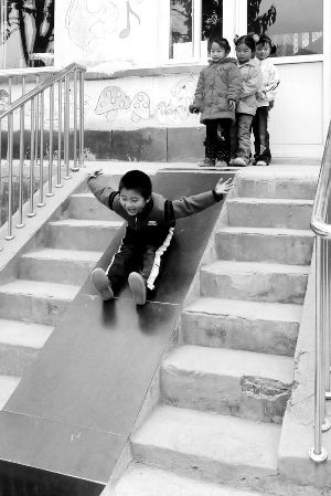 土滑梯:幼兒園外的樓梯上,老師用大理石面和水泥砌成光滑的斜坡,孩子們助跑幾步,屁股一坐,雙手一伸,從“滑梯”上沖下來。