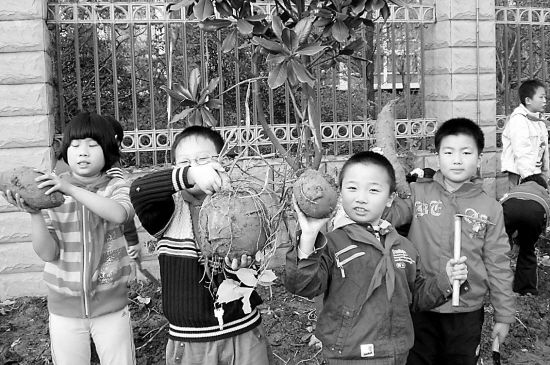 “這些番薯很容易養(yǎng),孩子們偶爾會來澆澆水,但除此之外就很少管它們。”至于普通的番薯苗為什么能長出這么大的番薯,這個問題連“苗苗社”的指導(dǎo)老師也說不清,“三(2)班馬簡寧的爺爺每天都會來幫它們施點肥,除了這個,我們真的想不出其他原因了!庇浾 金婕