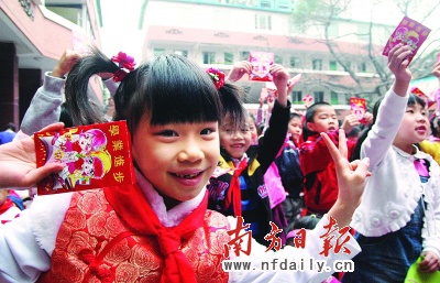 本報訊(記者/謝苗楓實習(xí)生/王芝露張晏)紅紅的中國結(jié)、大大的燈籠……昨天,廣州市140多萬中小學(xué)生正式返校上課,雖然春節(jié)已過,但孩子們還沉浸在節(jié)日的喜慶中。更開心的是,廣州還將在今年探索以補助方式逐步讓來穗務(wù)工就業(yè)農(nóng)民子女接受免費義務(wù)教育。