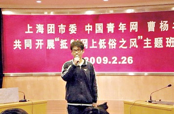 本報(bào)訊記者 范彥萍 “當(dāng)心我讓芙蓉姐嫁給你!”“裝A裝C莫裝(A+C)/2啊!”……這些語(yǔ)言或許讓你一頭霧水,卻恰恰是網(wǎng)絡(luò)流行語(yǔ),更令人憂心的是,如今越來(lái)越多的學(xué)生們對(duì)這些不文明,甚至低俗的網(wǎng)絡(luò)語(yǔ)言信手拈來(lái),線上學(xué),線下用。今年初,全國(guó)開(kāi)展整治互聯(lián)網(wǎng)低俗之風(fēng)專項(xiàng)行動(dòng),專家更直言青少年是網(wǎng)絡(luò)低俗的最大受害者。昨天,由團(tuán)市委、中國(guó)青年網(wǎng)等主辦的“抵制網(wǎng)上低俗之風(fēng)”主題班會(huì)活動(dòng)在上海市曹楊二中和長(zhǎng)寧區(qū)愚園路第一小學(xué)開(kāi)展,趁著抵制之風(fēng)掃蕩網(wǎng)絡(luò)惡俗對(duì)校園文化的惡劣影響。