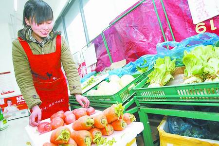 昨日下午,在鄭州市圣菲城旁的“咱地里”超市內(nèi),仍是學(xué)生打扮的姜茵和雇的幾名工人一起忙著理貨、接待顧客,一點(diǎn)沒(méi)有老板的架勢(shì)。