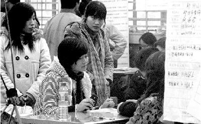 來自許昌學(xué)院的陳明軍告訴記者,經(jīng)過3個多月找工作的艱苦經(jīng)歷,他對未來工資的期望值已經(jīng)從原本的月薪2000元跌到了1000元!捌鋵嵨覀儜(yīng)該懂得變通,這樣才能應(yīng)對就業(yè)壓力。”記者在現(xiàn)場了解到,大多數(shù)畢業(yè)生對薪酬的期望值在1000元左右,800元也可以接受,試用期工資600元一個月就行。
