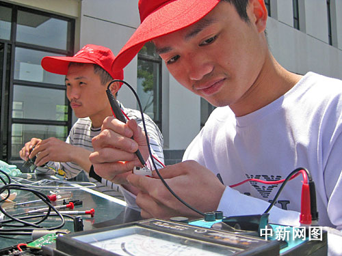 4月26日,浙江紡織服裝職業(yè)技術學院大學生就業(yè)創(chuàng)業(yè)協(xié)會組建青年志愿隊,和寧波大學理學院家電維修社聯(lián)合開展維修小家電活動。他們在校園內設攤,用一天時間免費為同學們修理電風扇、電吹風、MP3等各種小家電200余件。