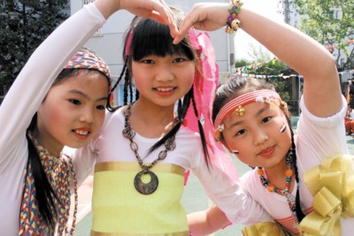 晚報(bào)訊昨天,盧灣區(qū)瞿溪路小學(xué)的師生們自行設(shè)計(jì)一次探尋世博文化的旅行。其中,師生們動(dòng)手制作世博參展國(guó)的服裝,在校園T臺(tái)走秀。日本素雅端莊的和服、斐濟(jì)五彩斑斕的草裙、泰國(guó)金絲耀眼的紗麗。服飾看起來十分精美,異國(guó)風(fēng)情十足,可一打聽,這些參展國(guó)服裝可全是巧手的師生們用布頭、塑料臺(tái)布等廢舊材料制作的。除了T臺(tái)秀,學(xué)校創(chuàng)編了世博熱舞,男孩女孩齊參與,舞出活力;《海寶歡迎你》的主旋律在班班響起,自編自演的世博童謠串串燒在校園回蕩! 跤浾 錢鈺 攝影 方大綜