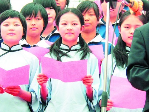 這是朗誦達(dá)人開賽以來記者見過的花樣最多的一次。在深情款款的朗誦聲中,一名女生翩然起舞,這是黎托中學(xué)專門準(zhǔn)備的配樂配舞朗誦。教師們自創(chuàng)的詩歌成為了此次朗誦的開場——“四月風(fēng)”,而此次朗誦大會的名字也正是命名為“四月風(fēng)”現(xiàn)場詩文朗誦會。一張張青春的臉,一首首動人的詩,高潮在最后掀起,壓軸的是那篇著名的《少年中國說》。只見學(xué)生們身著電視劇《恰同學(xué)少年》中學(xué)生們的服裝,齊聲朗誦著“少年強(qiáng)則國強(qiáng)……”參加《少年中國說》朗誦的是黎托中學(xué)的全校師生共計950人,高亢的聲音響徹云霄。
