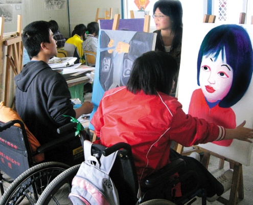 現(xiàn)在靠文化課上本科,對這屆畢業(yè)生來看,我覺得很難。不過,從去年開始,我們有意識地動(dòng)員高三學(xué)生突擊學(xué)畫畫,畢竟藝術(shù)考生文化成績不高,而且對殘疾人來講,學(xué)畫畫也是一個(gè)不錯(cuò)的出路。著名畫家周春芽還專門輔導(dǎo)了我們這些學(xué)生。這次有30多名畢業(yè)生參加了藝術(shù)類統(tǒng)考,成績不錯(cuò),估計(jì)有10多人可以上本科院校。