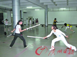 本報(bào)訊 (記者盧迎新 實(shí)習(xí)生 李婷婷攝影報(bào)道)暨南大學(xué)有個(gè)短兵協(xié)會(huì),每周的周二、周四、周日晚上,會(huì)員們都集中練習(xí)。這種對(duì)抗性強(qiáng)的運(yùn)動(dòng)受到在校博士碩士們的熱捧,尤其吸引了一些平日里斯文纖弱的女博士加入,她們表示:“就算被打也很爽快,認(rèn)為是一種時(shí)尚!