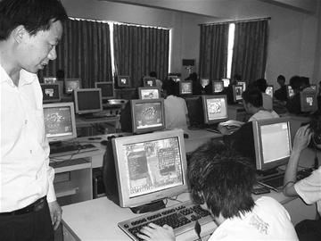 記者隨后來到某高級技工學(xué)!拔C室”,也看到了類似的情況。據(jù)學(xué)生們講,他們只須花10元錢買一張上網(wǎng)卡,就可以任意上網(wǎng)(每小時收費1元)。