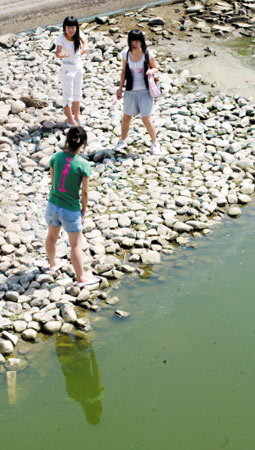 昨天上午9:00,大胡同附近的河邊傳來尖叫聲。循著聲音望去,只見河邊站著三名女孩,其中一名穿綠色T恤的女孩最靠近河水!皠e過來,你們再走一步我就下河。”說著,女孩把一只腳踩進水里,另外兩人見狀,只好停下腳步。幾個好心路人見狀趕緊拿出手機要報警,就在這時,幾名男女青年攔住了要報警的人。他們稱站在河邊的三個女孩都是他們的同伴,她們是在“演戲”,不會真的輕生,聽到這兒眾人才算放心。
