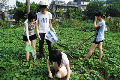 通過(guò)篩選,小庚和另外3名女生入選了這次活動(dòng),巧合的是,四人竟然全是網(wǎng)上偷菜游戲的資深玩家。7月18日,四名同學(xué)就搭上了商報(bào)特派專車,來(lái)到了南岸區(qū)彈子石的一處菜園,開(kāi)始了他們的種菜活動(dòng)!