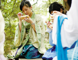 現(xiàn)場(chǎng)組織者玄翎(網(wǎng)名)告訴記者:“乞巧是古人一種儀式,乞巧的含義就是向織女乞求一雙巧手,女子將線穿過(guò)七個(gè)針眼的過(guò)程也是一個(gè)祈福的過(guò)程!被顒(dòng)中,女孩們還學(xué)習(xí)整衣冠行漢禮,從提裙跪坐,到跽,再到拜,直至禮成。 (圖片均張春海攝)