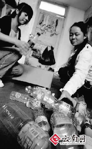近日,記者路過(guò)昆明學(xué)院醫(yī)學(xué)院(原昆明市衛(wèi)生學(xué)校)時(shí),遇見(jiàn)三五成群的學(xué)生把廢棄的飲料瓶拿繩子拴著抬著走出校門(mén),一打聽(tīng)才知道原來(lái)是學(xué)生們撿飲料瓶賣(mài)后換成錢(qián)當(dāng)班費(fèi)。學(xué)校黨委副書(shū)記曹全科昨天告訴記者:“這種做法是10年前就開(kāi)始養(yǎng)成的,如今學(xué)生撿飲料瓶攢班費(fèi)在學(xué)校里蔚然成風(fēng),全校28個(gè)班級(jí)的2000多名大學(xué)生都自覺(jué)撿瓶子、賣(mài)瓶子,錢(qián)拿來(lái)當(dāng)做班費(fèi)!