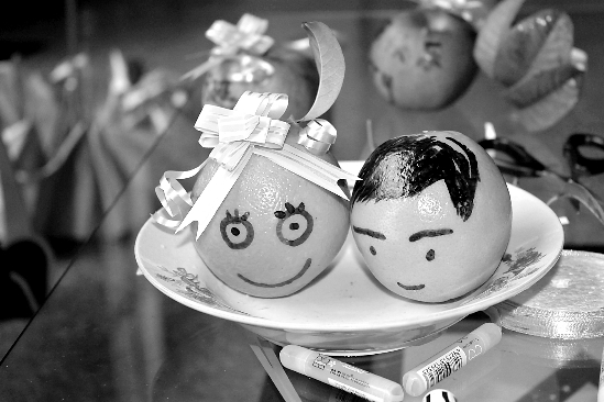 “水果賀卡是種取代傳統(tǒng)紙質(zhì)卡片的新型賀卡,以蘋(píng)果、橙子、香蕉等日常水果為材料,用在上面寫(xiě)字、繪畫(huà)、粘貼寫(xiě)有祝福語(yǔ)的彩色絲帶等方式來(lái)裝扮。”