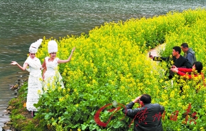 本報(bào)訊(記者海國(guó)攝影報(bào)道)昨日,從化石門公園金海節(jié)開(kāi)幕前,來(lái)自西安交大的兩名女大學(xué)生,分別身穿一件全部由白紙制的成環(huán)保衣服,穿梭在花中向游人宣傳環(huán)保觀念。據(jù)該服裝設(shè)計(jì)的作者、環(huán)保主義者朱女士說(shuō):創(chuàng)作靈感來(lái)自哥本哈根會(huì)議。兩件服裝分別花費(fèi)一個(gè)星期,用了90多筒卷紙折疊而成,希望人類保護(hù)自然,愛(ài)護(hù)環(huán)境,不然五光十色的地球?qū)⑼噬兂蓡我坏陌咨?table border=0 cellspacing=0 cellpadding=0 align=left>