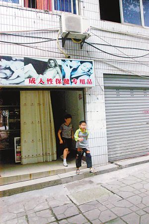昨天,記者來到這家成人用品店,外面一個(gè)醒目招牌上,有3名熱辣女郎搔首弄姿,約10平方米店面擺放著各種成人用品。店內(nèi)一側(cè)有一條狹長(zhǎng)通道,是通往二樓游戲廳的必經(jīng)之路。
