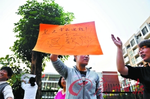 昨日下午4時(shí),數(shù)10名家長(zhǎng)聚集在了該幼兒園門口,部分心情激動(dòng)的家長(zhǎng)還打出了寫(xiě)著“堅(jiān)決反對(duì)漲價(jià)”和“退回多收學(xué)費(fèi)”的牌子。