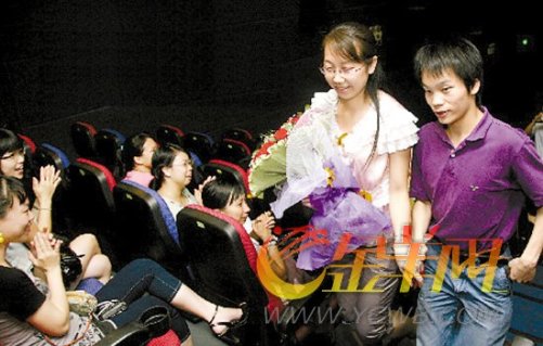 這對(duì)情侶都是老師,男的叫劉天平,一所師范學(xué)院人文學(xué)院的老師,女的名叫杜晶,一所學(xué)校的數(shù)學(xué)老師。這對(duì)情侶兩年前相識(shí)后,拍拖最多的地方就是電影院。劉天平告訴記者,戀愛后只要有空,一定會(huì)到電影院看電影,兩年來幾乎不會(huì)放過任何一部電影!拔覀兲貏e喜歡憂郁、浪漫的電影,每次看電影,我們都與電影里的人物一起哭、一起笑。電影已經(jīng)成為我們生活中很重要的一部分。”