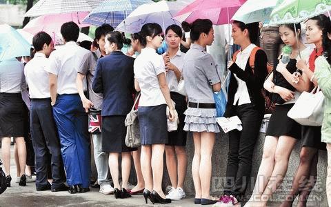 昨天(13日,下同)一大早,綿陽飄起了雨。雖然氣溫下降,但市區(qū)科技大樓樓下卻站滿了身著短袖薄裙的年輕人——四川航空乘務員和空中安全員災區(qū)專場招聘會在這里舉行。昨天,一共有來自全國各地的約2000名考生前來應聘。據(jù)介紹,在具有同等條件、水平的前提下,來自災區(qū)的學生將獲得更大的機會。