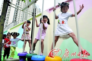 記者在現(xiàn)場(chǎng)見到,與其他幼兒園不同的是,剛開辦的禪城區(qū)天湖酈都幼兒園1700平方米的戶外活動(dòng)場(chǎng)地上,布滿了“梅花樁”、“吊臂橫桿”、“高空爬網(wǎng)”、“水泥管”、“迷宮”、“碎石路”等各種各樣的設(shè)施,儼然一個(gè)小型“戶外軍事拓展基地”。