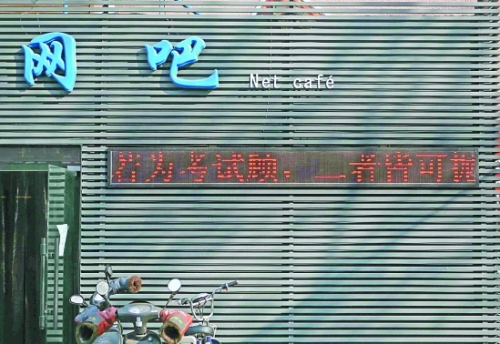 “聊天誠(chéng)可貴,游戲價(jià)更高,若為考試故,兩者皆可拋!边@首改編自裴多菲名句的打油詩(shī),在臨近期末考試時(shí),“登”上了舟山東路旁一家網(wǎng)吧門(mén)口的滾動(dòng)顯示屏,不過(guò)網(wǎng)吧不小心把“故”錯(cuò)寫(xiě)成了“顧”。這幾天,有些學(xué)生考完打算回家,網(wǎng)吧老板同步又打出“祝同學(xué)們合家快樂(lè),虎年虎虎生威”的字樣,“歡送”學(xué)生返家過(guò)年。 周瑾 葉玉躍 李翔 攝