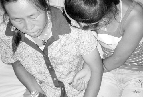 ●女童小月(化名)雙手緊緊抓住母親和姐姐的胳膊,腳步匆忙地閃進記者的房間。隨著“咔嗒”的關(guān)門聲,她驚恐地抬起頭,死盯著門閂看了三五秒鐘,直到母親伏在耳邊說“門已經(jīng)上鎖了”,才肯坐在床沿,將身體埋在母親懷里。