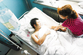“我們什么情況都不知道,接到學(xué)校通知時(shí),孩子已經(jīng)被送到醫(yī)院了!”趙醒的母親不斷地給兒子揉手,“學(xué)校只告訴家長(zhǎng),孩子出事了,別的也沒說(shuō)什么!薄昂⒆邮潜焕渍鹇榱耍 壁w醒的奶奶說(shuō)。
