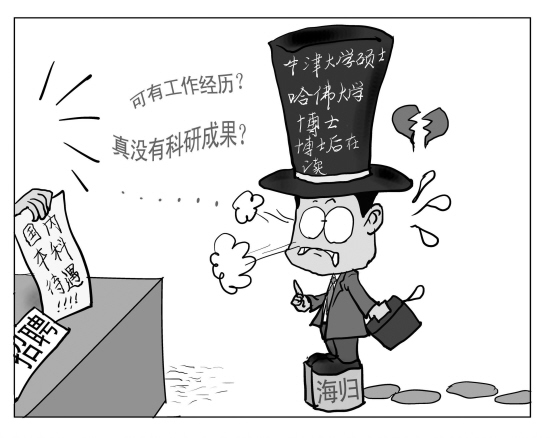 而資深人力資源專家表示,現(xiàn)在的企業(yè)老總,看著海歸有點(diǎn)犯難。