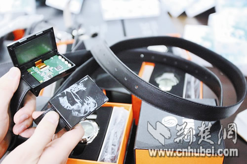 皮帶也能偽裝成作弊設(shè)備:皮帶頭其實(shí)是接收器,旁邊設(shè)有一個(gè)開(kāi)關(guān),打開(kāi)后可以向外翻下一個(gè)液晶屏。