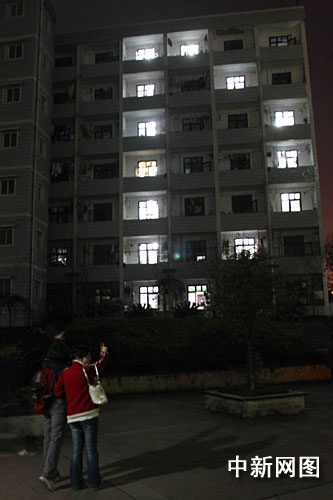 中新網(wǎng)重慶3月27日電 (連肖)27日是地球一小時日,當(dāng)晚8時30分至9時30分,重慶9所高校大學(xué)生開展了熄燈一小時活動。其中,西南大學(xué)學(xué)生為倡導(dǎo)低碳生活,用寢室燈光和蠟燭分別拼成了字母“D”。
