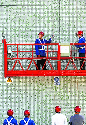 這 93名考生分別由11家保潔公司推薦,都有高層建筑保潔工作經(jīng)驗(yàn),考試之前全部經(jīng)過100學(xué)時(shí)的培訓(xùn)。43歲的付正會從事高層建筑保潔工作有十幾年了,鳥巢、水立方的“洗臉”工程都參與過。“像鳥巢這樣的大項(xiàng)目,要50多人干上半個(gè)月呢。”付正會說,這工作收入不低,但有些危險(xiǎn),干活兒的工人都應(yīng)該經(jīng)過專業(yè)培訓(xùn)和考試。