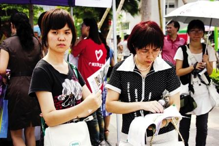 昨日氣溫高達35攝氏度,太陽下的大學(xué)城像個蒸籠。家長、考生和高校老師們汗流浹背,各高校的教師、領(lǐng)導(dǎo)一直堅持在崗位上;考生往往是全家出動。廣州市招辦組織家長和考生分坐30部大巴免費在廣州大學(xué)主會場和各高校間穿梭參觀。