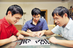 上學(xué)以后,施媽媽說(shuō),自己操的心反倒不多了。小學(xué)布置默生詞,她讓三個(gè)孩子互相默寫(xiě);檢查作業(yè),她也不插手,讓兄弟仨互換檢查。老三葉誠(chéng)輝在一旁插話(huà)說(shuō):“三胞胎的好處挺多的,學(xué)習(xí)上不懂的可以互相請(qǐng)教,生活中也比同學(xué)有更多的樂(lè)趣。”從小到大,三胞胎成績(jī)一直名列前茅,從沒(méi)有補(bǔ)過(guò)課,考第一名也沒(méi)什么獎(jiǎng)勵(lì)。到了高中,他們的學(xué)習(xí)也很輕松,基本不開(kāi)夜車(chē)。“三人行”還有一大好處是,學(xué)習(xí)上有不同見(jiàn)解,三人可以經(jīng)常爭(zhēng)論。