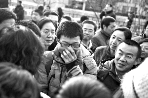 昨天的北大自主招生面試考場設在文史樓。上午11時,第一批面試完的考生走出考場。尚在等待下午和今天面試的考生,隨即圍上來打聽考題的風格。據考生介紹,同時進行面試的有12個考場,面試過程中是五人一組,三名評委。在面試中要先抽題,上午的題目共12道,考生有兩次抽題機會,如果第一次抽到的題目不太有把握,還有第二次抽題的機會,但第二次抽題之后就只能答這一題,不能再反悔。