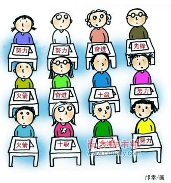 “組別也不是一成不變的,比如有學(xué)生在語(yǔ)文科屬于‘努力組’,但其數(shù)學(xué)好,那么在數(shù)學(xué)課上就屬于‘先鋒組’了。因此,給學(xué)生分層次是很彈性的,并非分快慢,充分尊重學(xué)生的意愿。而且允許學(xué)生自己為組別命名,如有的組想像火箭一樣一飛沖天的,就取名‘火箭組’,有的組覺(jué)得自己能力很強(qiáng),就取名‘十級(jí)組’。”