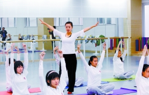 “屈右膝,左腿伸直,雙臂打開(kāi)……”昨天上午,伴隨著輕柔的音樂(lè),北京二中舞蹈廳里30名高中女生正在上瑜伽課。30來(lái)名高一學(xué)生手揮高爾夫球桿,有模有樣地學(xué)習(xí)擊球、推球。