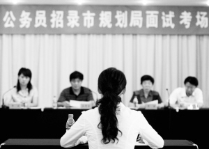 和往年不同的是,每名考生面試后,考官組當(dāng)場予以評分,并在下一名考生面試之后公布上一名考生的分?jǐn)?shù)?忌?jǐn)?shù)現(xiàn)場貼在考場走廊上。其次,我省對部分熱門崗位的面試,還首次進(jìn)行電視現(xiàn)場直播,如湖北省地稅局的面試現(xiàn)場。此外,每個考官組由7名考官組成,其中招錄單位4人,市里選派3人,還組織人大代表、政協(xié)委員及群眾代表到面試現(xiàn)場觀摩;各地、各招考部門紀(jì)檢監(jiān)察機(jī)構(gòu)設(shè)立投訴舉報電話,對各個環(huán)節(jié)全程監(jiān)督。