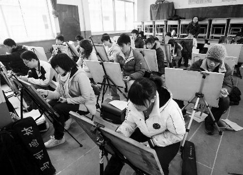 28日,山東省首次美術(shù)統(tǒng)考開考,5.4萬考生赴考。由于統(tǒng)考將使考生的機(jī)會相比去年有所減少,考生感覺“壓力比去年的考生大”。對于今年的統(tǒng)考試題,部分考生認(rèn)為“不容易” ,一些高中教師認(rèn)為“題目較為科學(xué),能夠充分考查考生的綜合專業(yè)水平”。