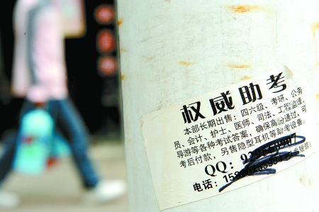 “作弊,隨著科技的發(fā)展在逐漸升級!毙〗苷f,按他學(xué)長們的說法,利用電子產(chǎn)品作弊,大約在1995年便出現(xiàn)了,那時,大家多用BP機(jī)作弊。