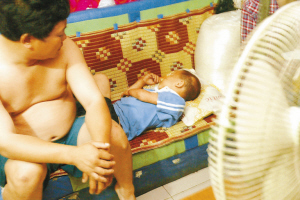 16歲的大女兒也已起床。對大女兒,陳彩霞很放心,因為她聽話、懂事,而且已經(jīng)能為家里掙錢了。讓她揪心的是9歲的兒子淘淘。和名字一樣,兒子淘氣得讓她有時候覺得很窩火。這時候,淘淘還蜷在沙發(fā)上睡覺,那是他的床。