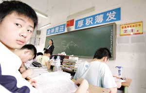 在高三(2)班的黑板邊,還掛著一個(gè)倒數(shù)牌,上面寫(xiě)著離高考還有26天。這個(gè)日歷牌顯示的是5月12日的日期,從那天撤離教室,孩子們昨天回到教室后,沒(méi)有人愿意將這個(gè)日歷牌換掉,也許這個(gè)傷痛在每個(gè)人心里,都沒(méi)有人愿意去觸及。班主任紀(jì)曉燕說(shuō),她班里有一個(gè)安縣的學(xué)生,母親在那天就被廣告牌砸死了。父親打電話通知他時(shí),他一天沒(méi)說(shuō)話。到現(xiàn)在,這孩子也沒(méi)掉過(guò)一滴眼淚,每天就是在狠狠地溫習(xí),也許這樣的方式能使他暫時(shí)麻醉,高考?jí)毫κ顾麜簳r(shí)忘掉了悲傷。這是一種心理上的自我催眠,但是老師擔(dān)心,一旦考完試,巨大的悲傷就會(huì)瞬間擊垮他。