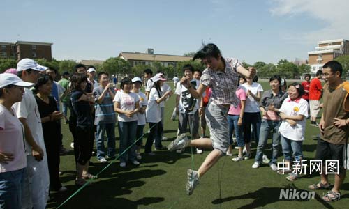 這是今天發(fā)生在南開大學(xué)首屆學(xué)生心理運(yùn)動(dòng)會(huì)上的一幕。以“情系災(zāi)區(qū),溫暖校園”為主題的學(xué)生心理運(yùn)動(dòng)會(huì),面向全校學(xué)生,希望通過團(tuán)體性身心活動(dòng),讓同學(xué)們放松身心,緩解壓力,熔煉團(tuán)隊(duì)精神,以奮發(fā)向上的精神狀態(tài)投入今后的學(xué)習(xí)生活。